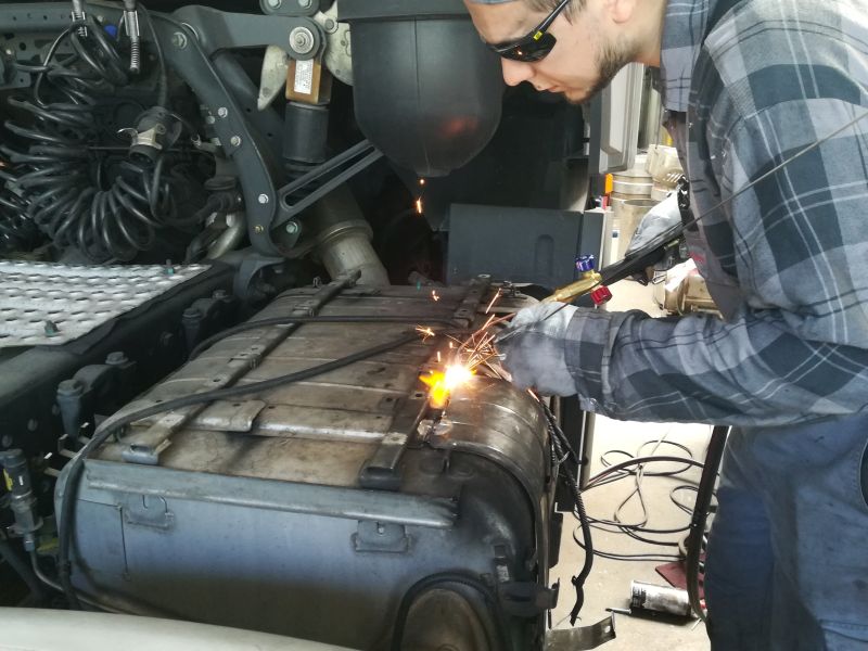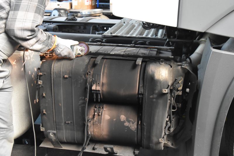 Bardzo często spotykanym problemem w Actrosie MP4 jest problem z wypalającymi się uszczelkami na katalizatorze wstępnym. W ramach likwidacji usterki dokonaliśmy rozcięcia katalizatora oraz wymiany zużytych części. W celu wykonania usługi niezbędna była ingerencja w obudowę katalizatora. Cena usługi była optymalna w stosunku do wykonanej przez nas pracy, niekiedy autoryzowane serwisy nie podejmują się podobnych realizacji i sugerują wymianę całego katalizatora.